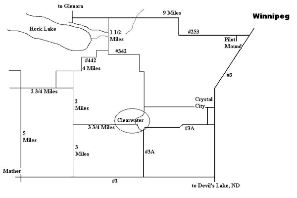 The Hamlet of Clearwater was established in 1876. It was considered to be in the Northwest Territories, as the official boundary of Manitoba was the 99th meridian ( which was one mile east of Clearwater ). In 1877, the boundary was extended to its present location. Take a walk down a side street and see two beautiful 100 year old churches - St. Paul’s Anglican Church was built in 1889 and its interior remains untouched by redecoration or design. Just a few steps away is the Knox United Church, which was built in 1893 at a cost of $1625.00